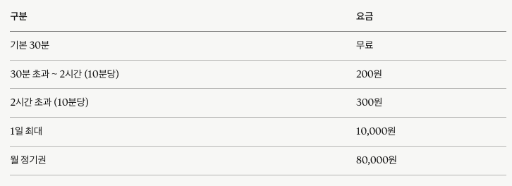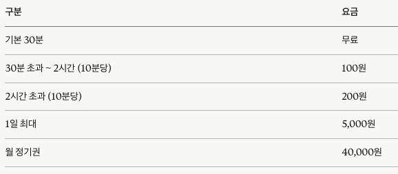 1급지 주차요금 (불당·두정·쌍용 주차장)